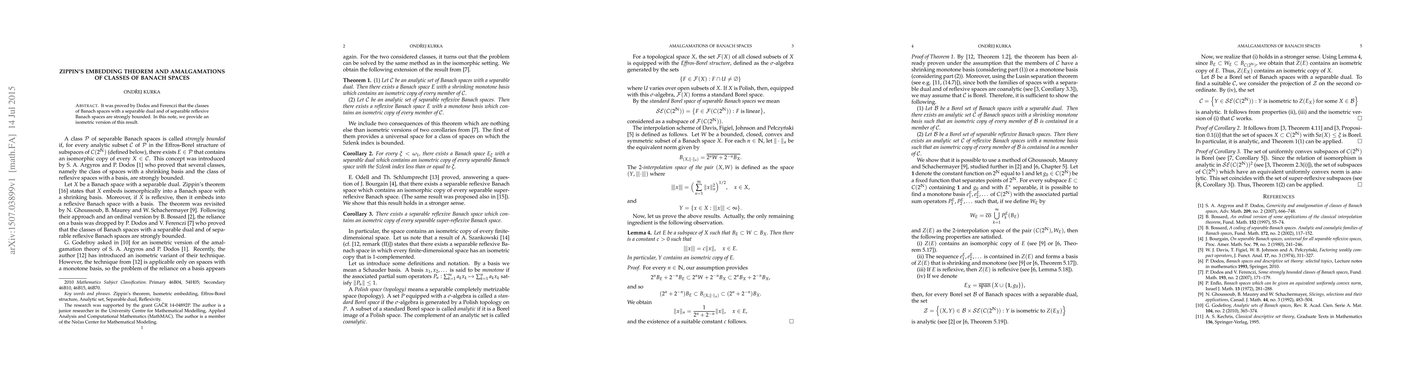 Summary: Dodos and Ferenczi established that certain classes of Banach spaces are strongly bounded; this paper presents an isometric version of their result, focusing on separable dual and separable reflexive Banach spaces.