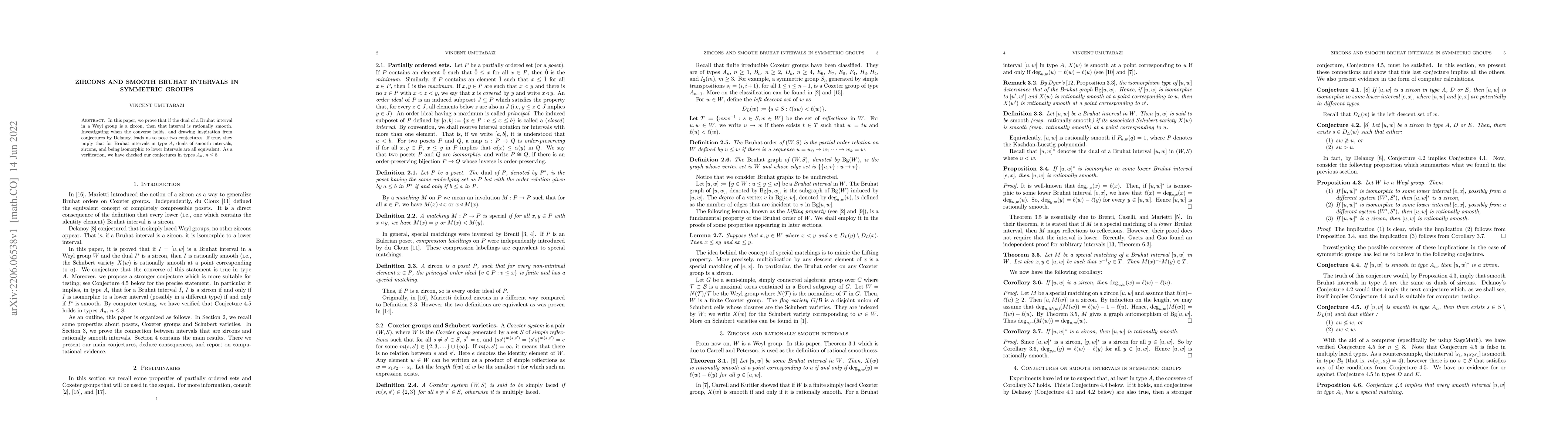 The paper introduces new conjectures connecting zircons, smooth intervals, and lower interval isomorphisms in symmetric groups, extending previous work on rational smoothness in Coxeter groups.