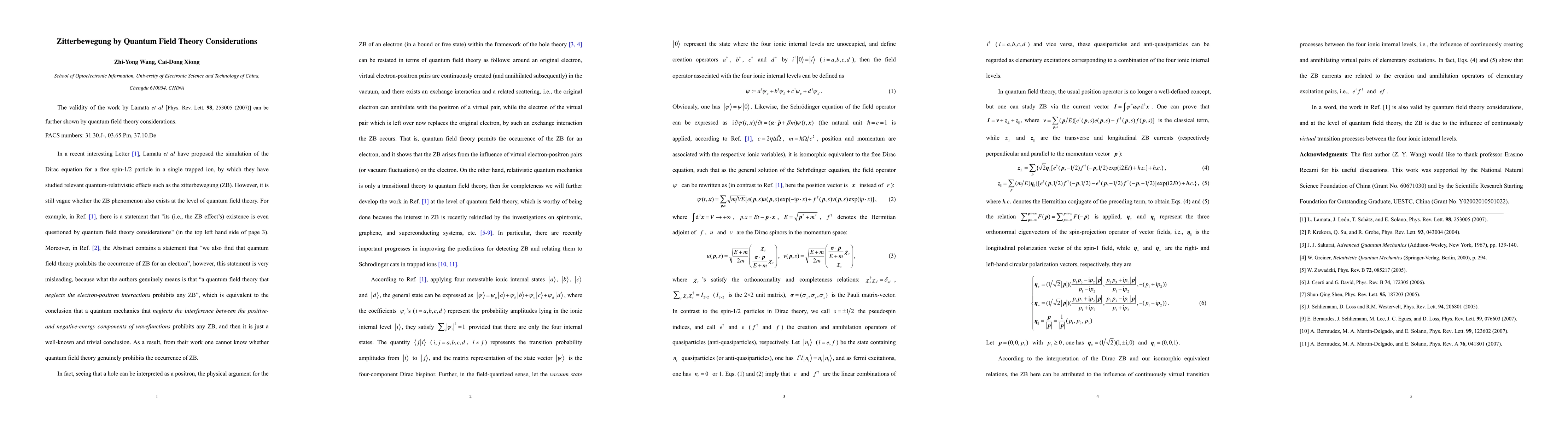 The validity of the work by Lamata et al [Phys. Rev. Lett. 98, 253005 (2007)] can be further shown by quantum field theory considerations.