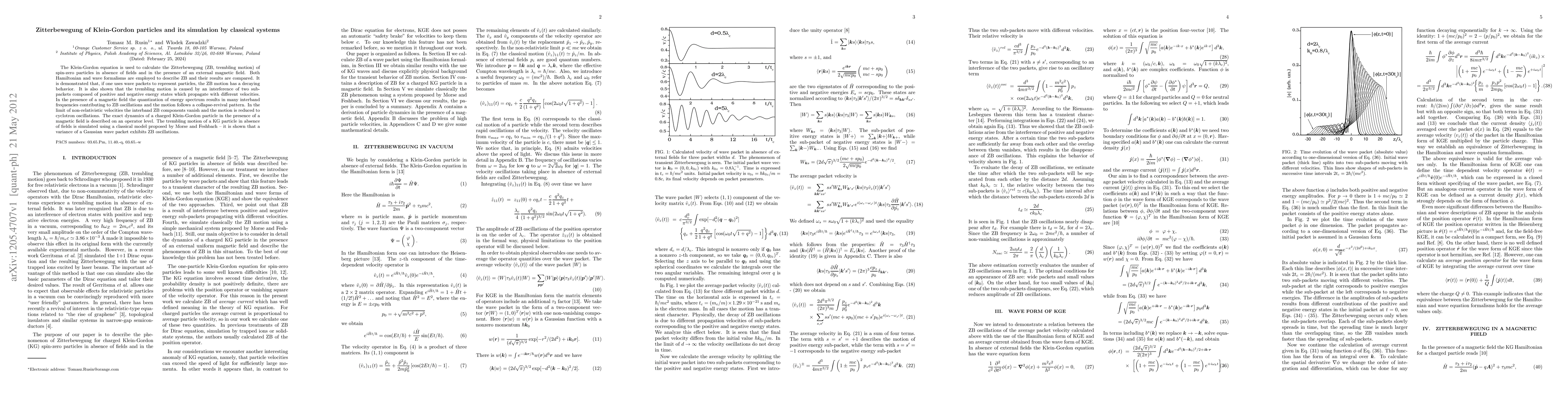 Research simulates Zitterbewegung (trembling motion) of particles using classical systems, revealing a decay behavior in wave packets and oscillations caused by magnetic fields.