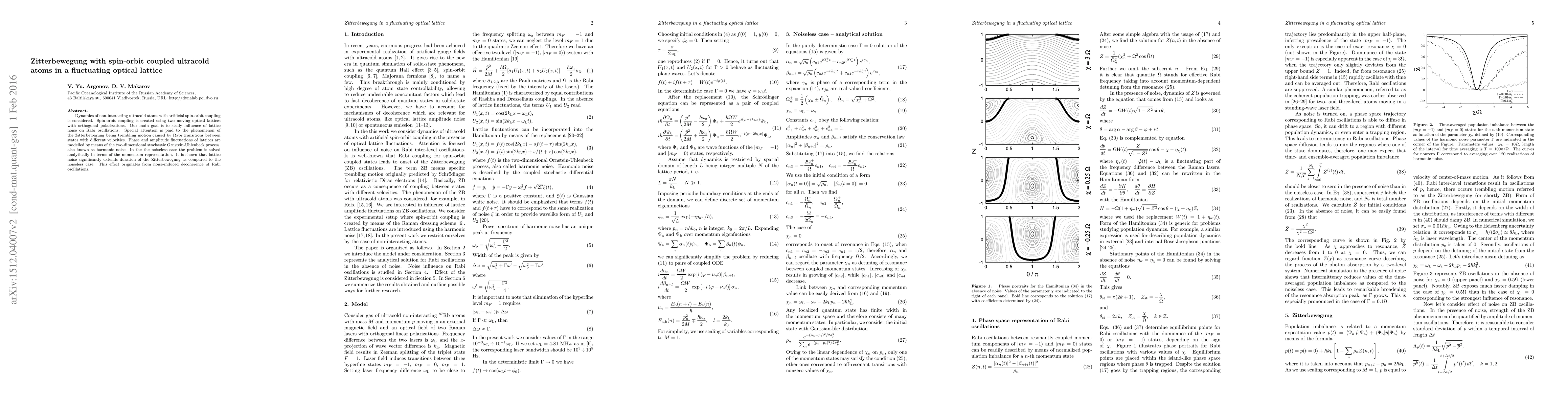 Dynamics of non-interacting ultracold atoms with artificial spin-orbit coupling is considered. Spin-orbit coupling is created using two moving optical lattices with orthogonal polarizations. Our main goal is to study influence of lattice noise on Rabi oscillations. Special attention is paid to the phenomenon of the Zitterbewegung being trembling motion caused by Rabi transitions between states with different velocities. Phase and amplitude fluctuations of lattices are modelled by means of the two-dimensional stochastic Ornstein-Uhlenbeck process, also known as harmonic noise. In the the noiseless case the problem is solved analytically in terms of the momentum representation. It is shown that lattice noise significantly extends duration of the Zitterbewegung as compared to the noiseless case. This effect originates from noise-induced decoherence of Rabi oscillations.