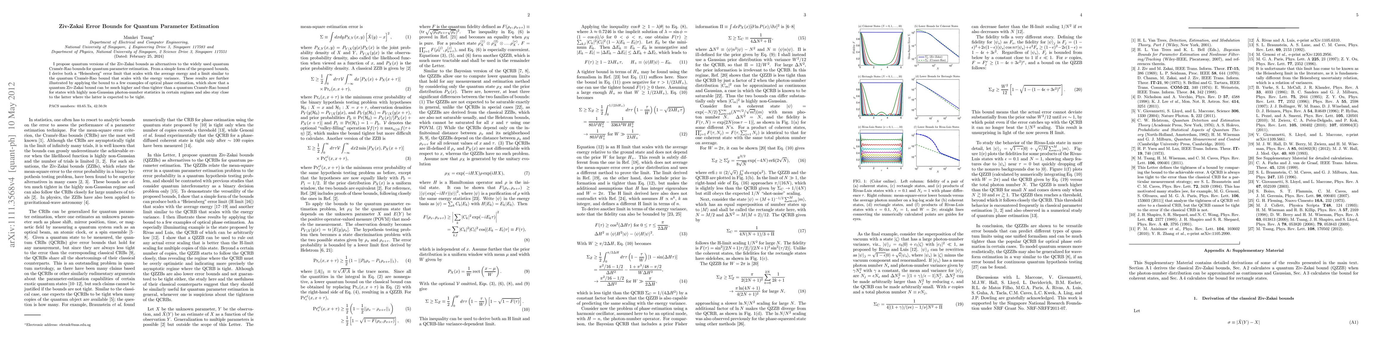 This paper proposes quantum versions of the Ziv-Zakai bounds as alternatives to the quantum Cramér-Rao bounds for quantum parameter estimation, showing tighter error limits for certain non-Gaussian photon-number statistics. The proposed bounds include a "Heisenberg" limit and a variance-based limit, demonstrated through optical phase estimation examples.