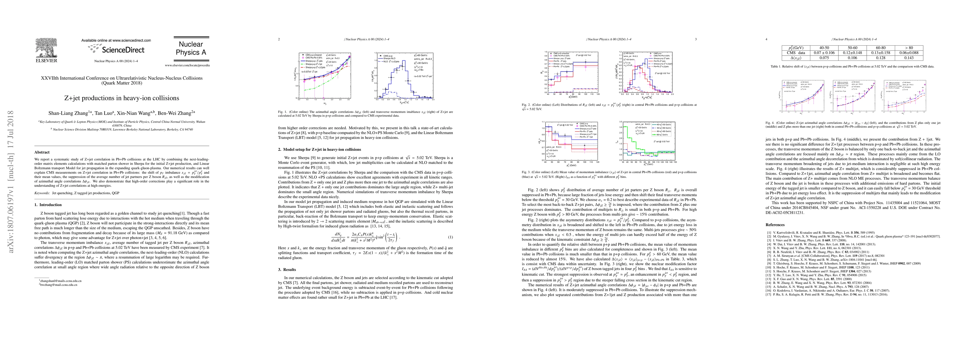 This study uses Sherpa for next-leading-order Z+jet production calculations and the Linear Boltzmann transport Model for jet propagation in quark-gluon-plasma to explain CMS measurements on Z+jet correlation in Pb+Pb collisions. High-order corrections are found to significantly impact understanding Z+jet correlations at high energies.