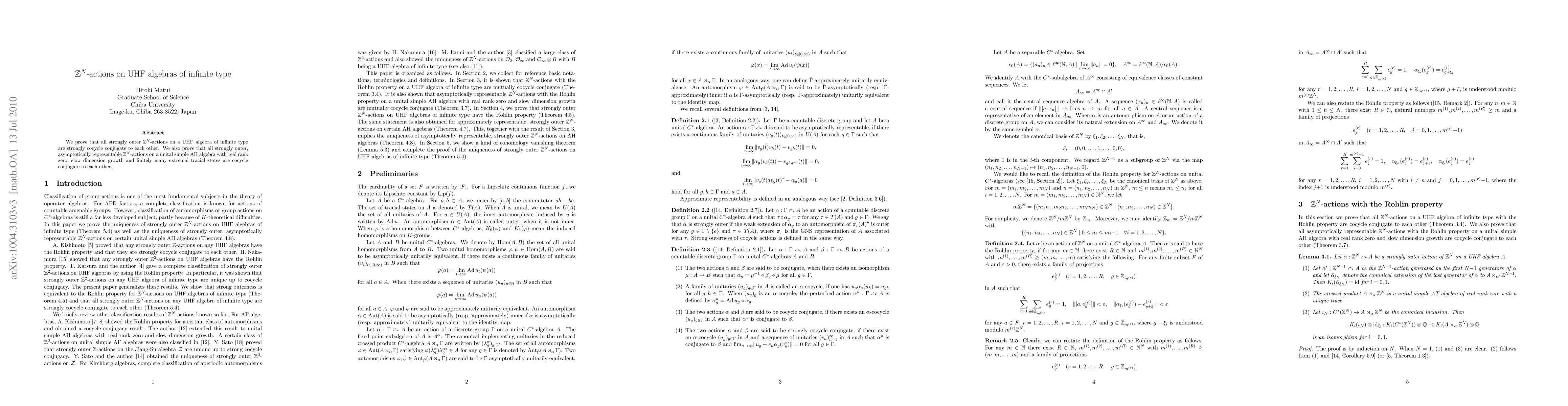 This paper demonstrates that all strongly outer Z^N-actions on UHF algebras of infinite type are strongly cocycle conjugate. Additionally, it shows that all strongly outer, asymptotically representable Z^N-actions on certain unital simple AH algebras are cocycle conjugate.