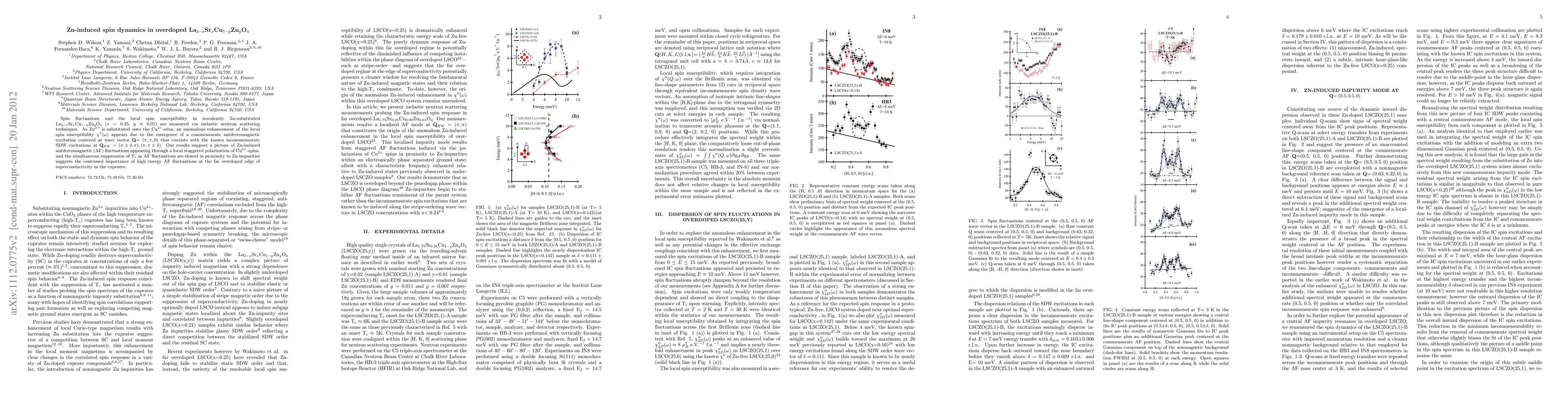 Spin fluctuations and the local spin susceptibility in isovalently Zn-substituted La$_{2-x}$Sr$_{x}$Cu$_{1-y}$Zn$_y$O$_4$ ($x=0.25$, $y\approx0.01$) are measured via inelastic neutron scattering techniques. As Zn$^{2+}$ is substituted onto the Cu$^{2+}$-sites, an anomalous enhancement of the local spin susceptibility $\chi^{\prime\prime}(\omega)$ appears due to the emergence of a commensurate antiferromagnetic excitation centered at wave vector \textbf{Q}$=(\pi, \pi, 0)$ that coexists with the known incommensurate SDW excitations at \textbf{Q}$_{HK}=(\pi\pm\delta,\pi), (\pi,\pi\pm\delta)$. Our results support a picture of Zn-induced antiferromagnetic (AF) fluctuations appearing through a local staggered polarization of Cu$^{2+}$-spins, and the simultaneous suppression of T$_c$ as AF fluctuations are slowed in proximity to Zn-impurities suggests the continued importance of high energy AF fluctuations at the far overdoped edge of superconductivity in the cuprates.
