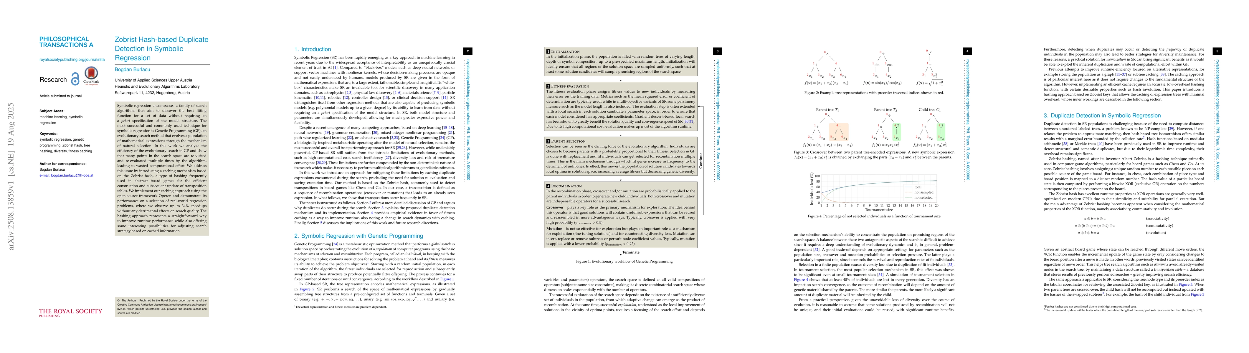 Symbolic regression encompasses a family of search algorithms that aim to discover the best fitting function for a set of data without requiring an a priori specification of the model structure. The most successful and commonly used technique for symbolic regression is Genetic Programming (GP), an evolutionary search method that evolves a population of mathematical expressions through the mechanism of natural selection. In this work we analyze the efficiency of the evolutionary search in GP and show that many points in the search space are re-visited and re-evaluated multiple times by the algorithm, leading to wasted computational effort. We address this issue by introducing a caching mechanism based on the Zobrist hash, a type of hashing frequently used in abstract board games for the efficient construction and subsequent update of transposition tables. We implement our caching approach using the open-source framework Operon and demonstrate its performance on a selection of real-world regression problems, where we observe up to 34\% speedups without any detrimental effects on search quality. The hashing approach represents a straightforward way to improve runtime performance while also offering some interesting possibilities for adjusting search strategy based on cached information.
