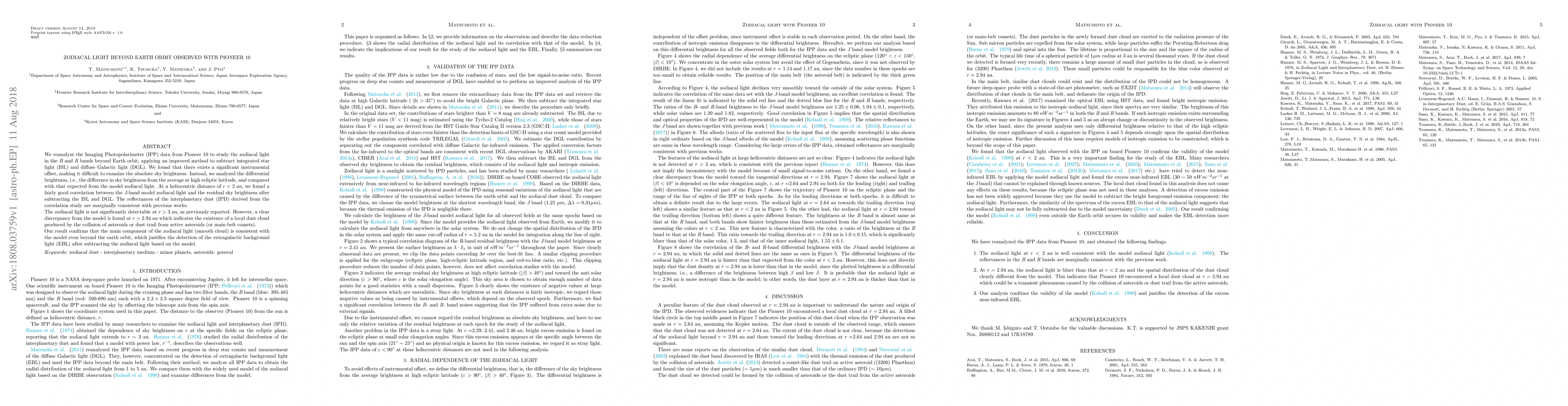 This study reanalyzes Pioneer 10 data to examine zodiacal light beyond Earth's orbit, finding a correlation with J-band model light at r<2 au, but also identifying a local dust cloud at r=2.94 au, suggesting asteroid collisions. The findings support the model of zodiacal light and justify background light detection methods.