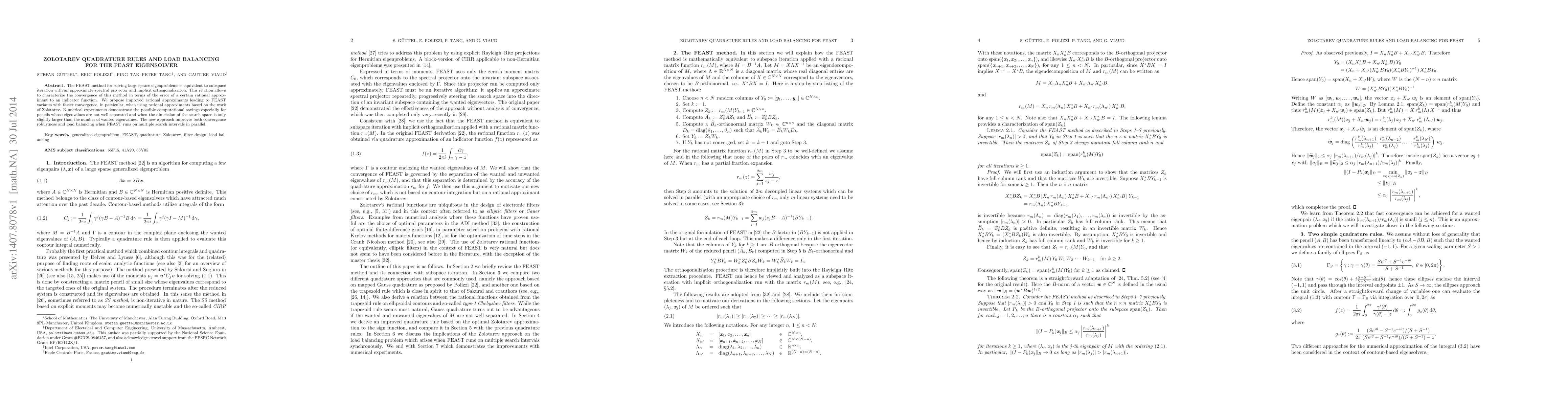 This paper proposes improved Zolotarev quadrature rules for the FEAST eigensolver, enhancing convergence speed and robustness, particularly for poorly separated eigenvalues. The new approach also improves load balancing in parallel computations.