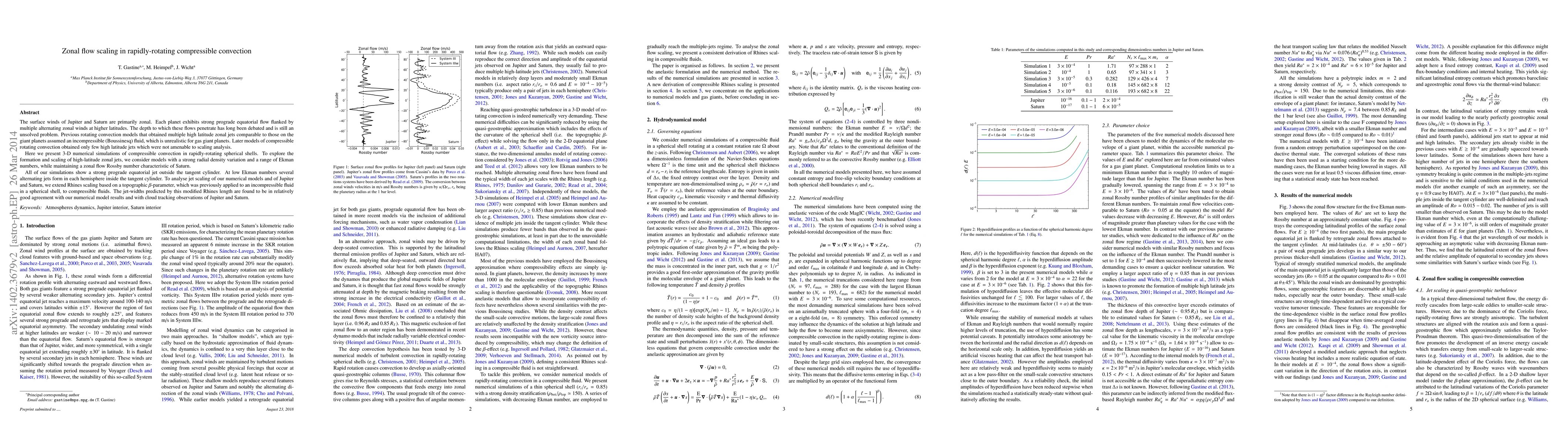 This paper presents 3-D numerical simulations of compressible convection in rapidly-rotating spherical shells to study the formation and scaling of high-latitude zonal jets, analogous to those on Jupiter and Saturn. The modified Rhines scaling based on a compressible $\beta$-parameter shows good agreement with the simulations and observations of these planetary jets.