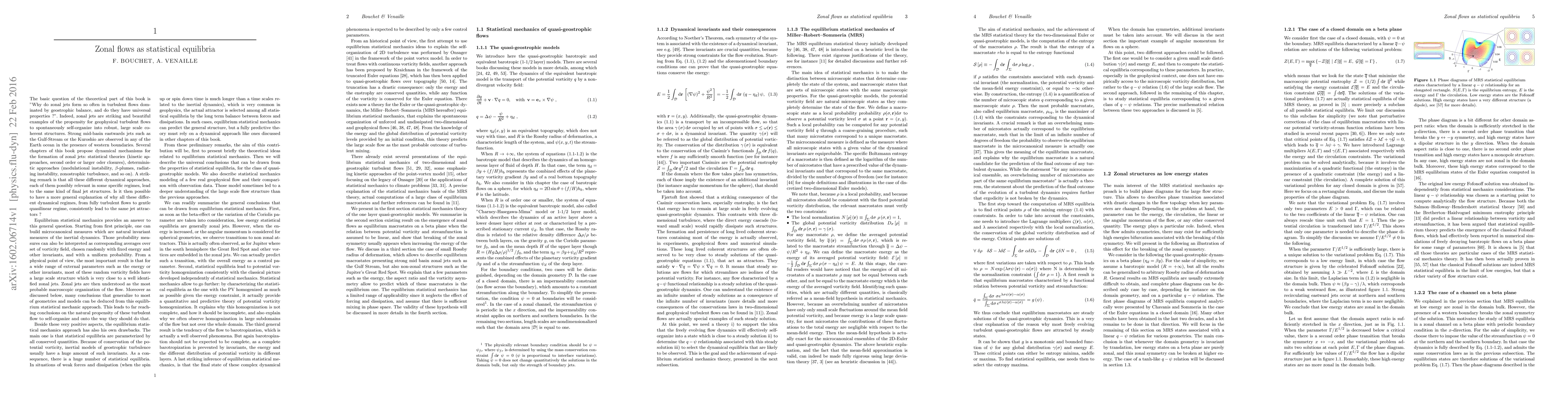 The paper presents a statistical mechanics approach to explain the emergence of zonal jets and large-scale coherent structures in geophysical turbulent flows, providing a unified explanation for various dynamical mechanisms.