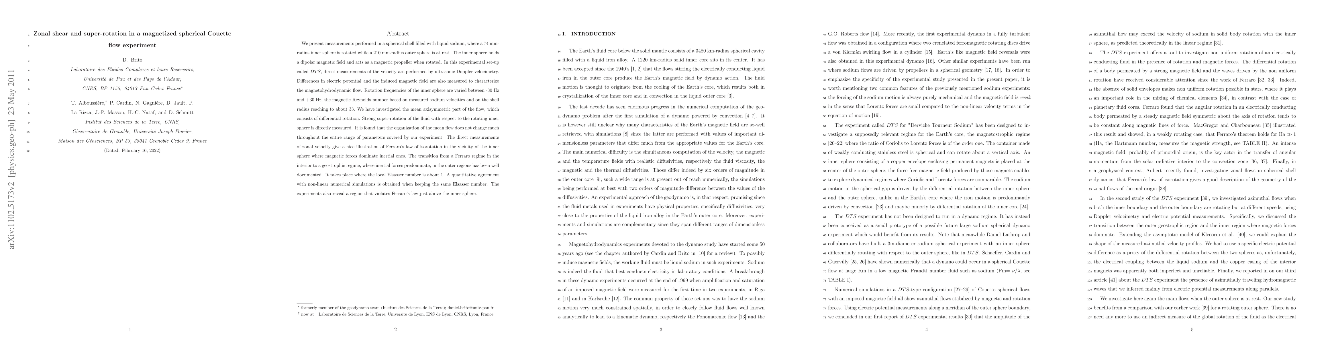 We present measurements performed in a spherical shell filled with liquid sodium, where a 74 mm-radius inner sphere is rotated while a 210 mm-radius outer sphere is at rest. The inner sphere holds a dipolar magnetic field and acts as a magnetic propeller when rotated. In this experimental set-up called DTS, direct measurements of the velocity are performed by ultrasonic Doppler velocimetry. Differences in electric potential and the induced magnetic field are also measured to characterize the magnetohydrodynamic flow. Rotation frequencies of the inner sphere are varied between -30 Hz and +30 Hz, the magnetic Reynolds number based on measured sodium velocities and on the shell radius reaching to about 33. We have investigated the mean axisymmetric part of the flow, which consists of differential rotation. Strong super-rotation of the fluid with respect to the rotating inner sphere is directly measured. It is found that the organization of the mean flow does not change much throughout the entire range of parameters covered by our experiment. The direct measurements of zonal velocity give a nice illustration of Ferraro's law of isorotation in the vicinity of the inner sphere where magnetic forces dominate inertial ones. The transition from a Ferraro regime in the interior to a geostrophic regime, where inertial forces predominate, in the outer regions has been well documented. It takes place where the local Elsasser number is about 1. A quantitative agreement with non-linear numerical simulations is obtained when keeping the same Elsasser number. The experiments also reveal a region that violates Ferraro's law just above the inner sphere.