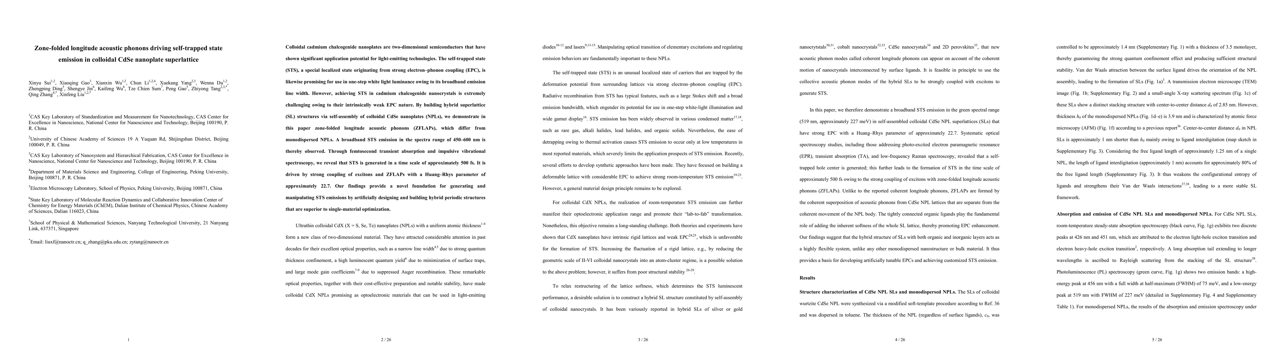 This paper demonstrates the emergence of zone-folded longnitude acoustic phonons (ZFLAP) in colloidal CdSe nanoplate superlattices, leading to self-trapped state (STS) emission with broadband linewidth. The study reveals that strong exciton-phonon coupling drives the STS emission, providing a new method for enhancing light-emitting technologies through hybrid superlattice structures.