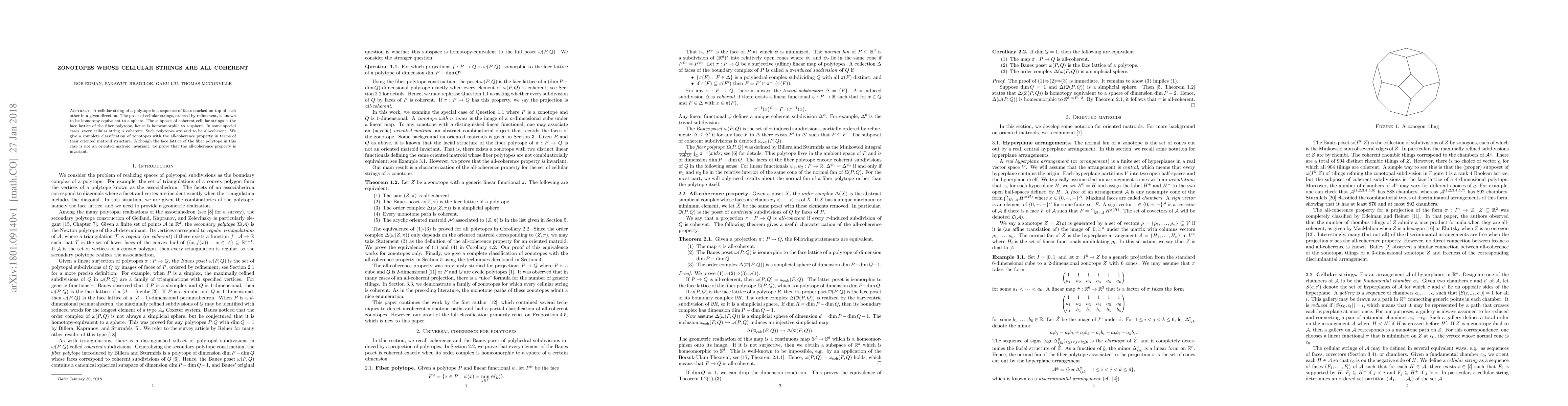This paper classifies zonotopes where every cellular string is coherent, termed all-coherent, based on their oriented matroid structure. Despite the face lattice of the fiber polytope not being an invariant, the all-coherence property itself is shown to be invariant.