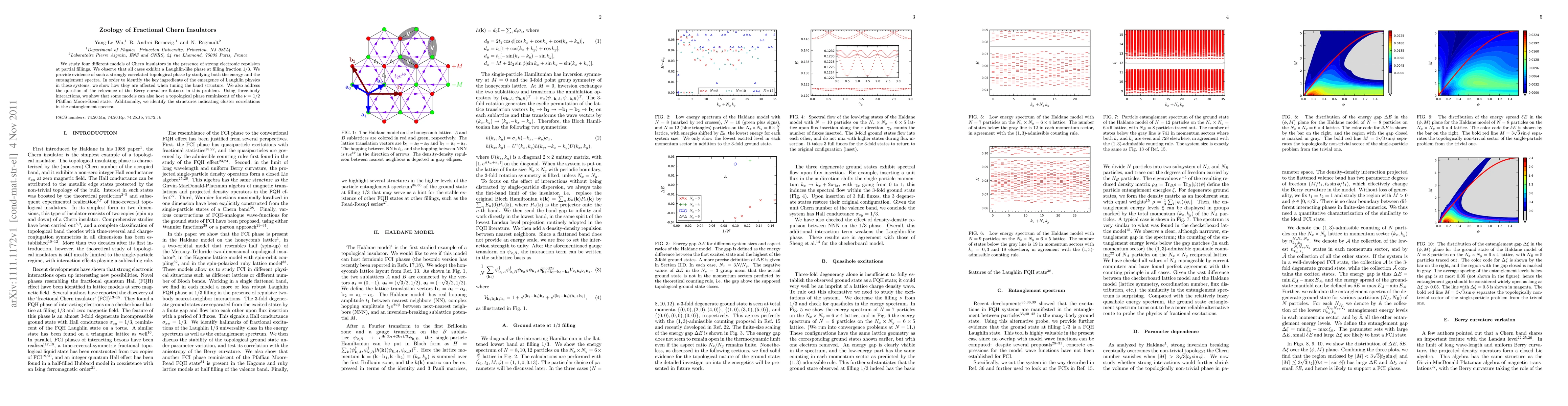 We study four different models of Chern insulators in the presence of strong electronic repulsion at partial fillings. We observe that all cases exhibit a Laughlin-like phase at filling fraction 1/3. We provide evidence of such a strongly correlated topological phase by studying both the energy and the entanglement spectra. In order to identify the key ingredients of the emergence of Laughlin physics in these systems, we show how they are affected when tuning the band structure. We also address the question of the relevance of the Berry curvature flatness in this problem. Using three-body interactions, we show that some models can also host a topological phase reminiscent of the nu=1/2 Pfaffian Moore-Read state. Additionally, we identify the structures indicating cluster correlations in the entanglement spectra.