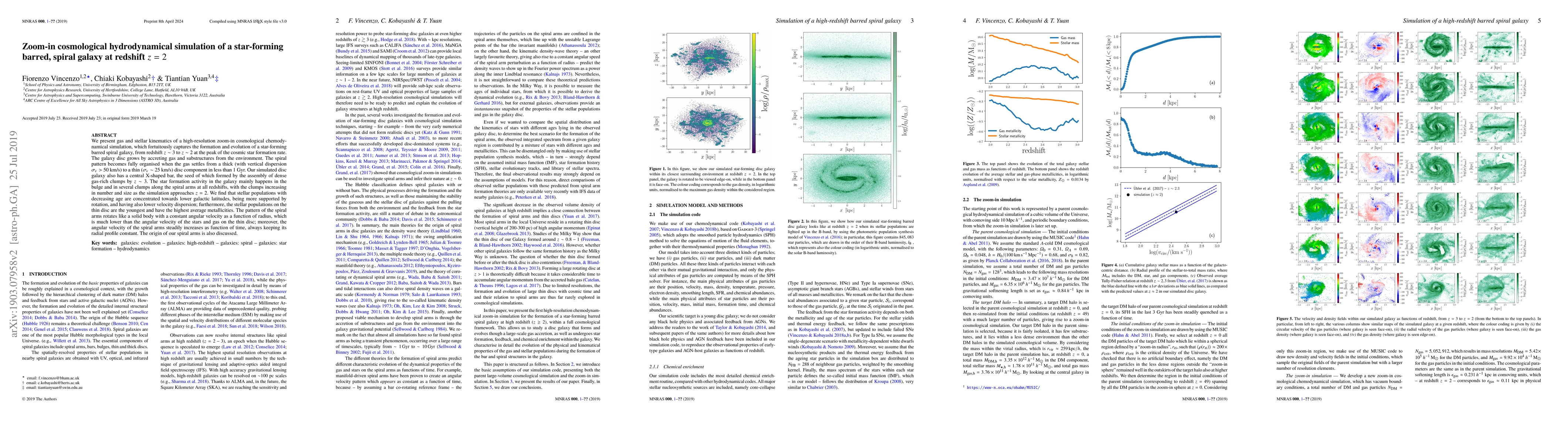 The paper presents a detailed zoom-in simulation of a high-redshift barred spiral galaxy, providing insights into its formation, evolution, and kinematic properties.