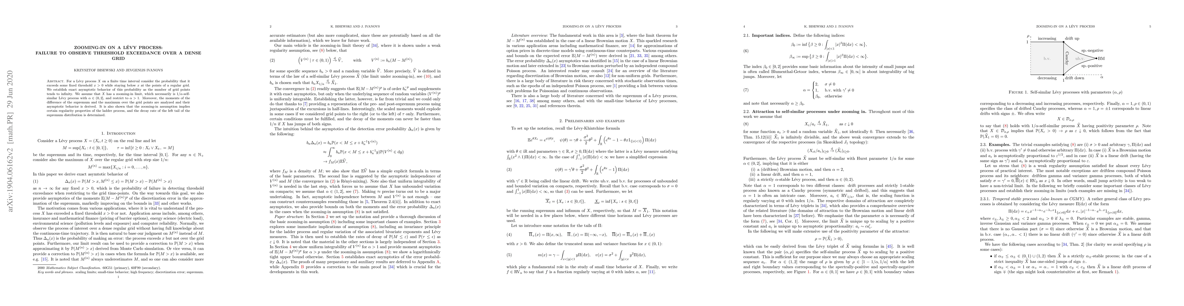 For a L\'evy process $X$ on a finite time interval consider the probability that it exceeds some fixed threshold $x>0$ while staying below $x$ at the points of a regular grid. We establish exact asymptotic behavior of this probability as the number of grid points tends to infinity. We assume that $X$ has a zooming-in limit, which necessarily is $1/\alpha$-self-similar L\'evy process with $\alpha\in(0,2]$, and restrict to $\alpha>1$. Moreover, the moments of the difference of the supremum and the maximum over the grid points are analyzed and their asymptotic behavior is derived. It is also shown that the zooming-in assumption implies certain regularity properties of the ladder process, and the decay rate of the left tail of the supremum distribution is determined.