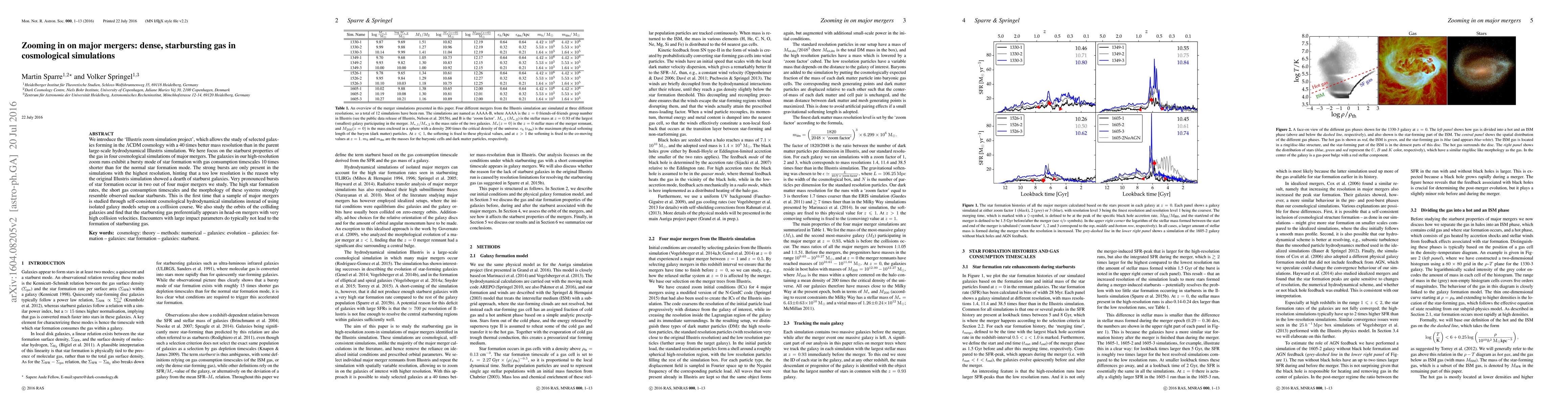 We introduce the `Illustris zoom simulation project', which allows the study of selected galaxies forming in the $\Lambda$CDM cosmology with a 40 times better mass resolution than in the parent large-scale hydrodynamical Illustris simulation. We here focus on the starburst properties of the gas in four cosmological simulations of major mergers. The galaxies in our high-resolution zoom runs exhibit a bursty mode of star formation with gas consumption timescales 10 times shorter than for the normal star formation mode. The strong bursts are only present in the simulations with the highest resolution, hinting that a too low resolution is the reason why the original Illustris simulation showed a dearth of starburst galaxies. Very pronounced bursts of star formation occur in two out of four major mergers we study. The high star formation rates, the short gas consumption timescales and the morphology of these systems strongly resemble observed nuclear starbursts. This is the first time that a sample of major mergers is studied through self-consistent cosmological hydrodynamical simulations instead of using isolated galaxy models setup on a collision course. We also study the orbits of the colliding galaxies and find that the starbursting gas preferentially appears in head-on mergers with very high collision velocities. Encounters with large impact parameters do typically not lead to the formation of starbursting gas.