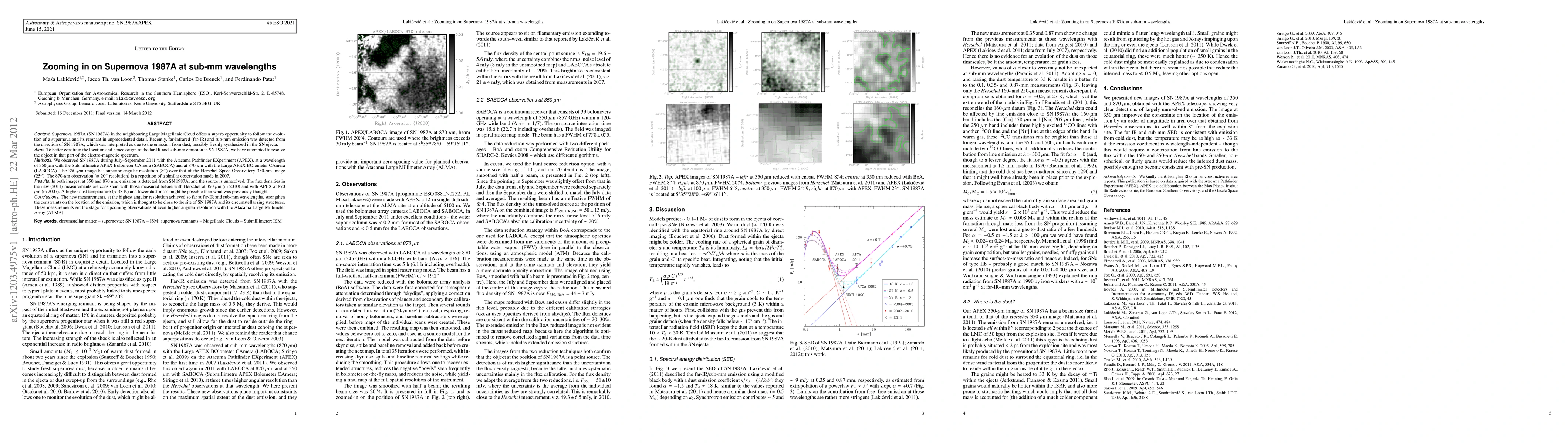 The paper presents sub-mm observations of Supernova 1987A using APEX, revealing unresolved emission at 350 and 870 microns. The findings suggest a dust origin near the SN site and its circumstellar ring structures, with a possible higher dust temperature (33K) and lower mass than previously estimated. These results pave the way for higher-resolution observations with ALMA.