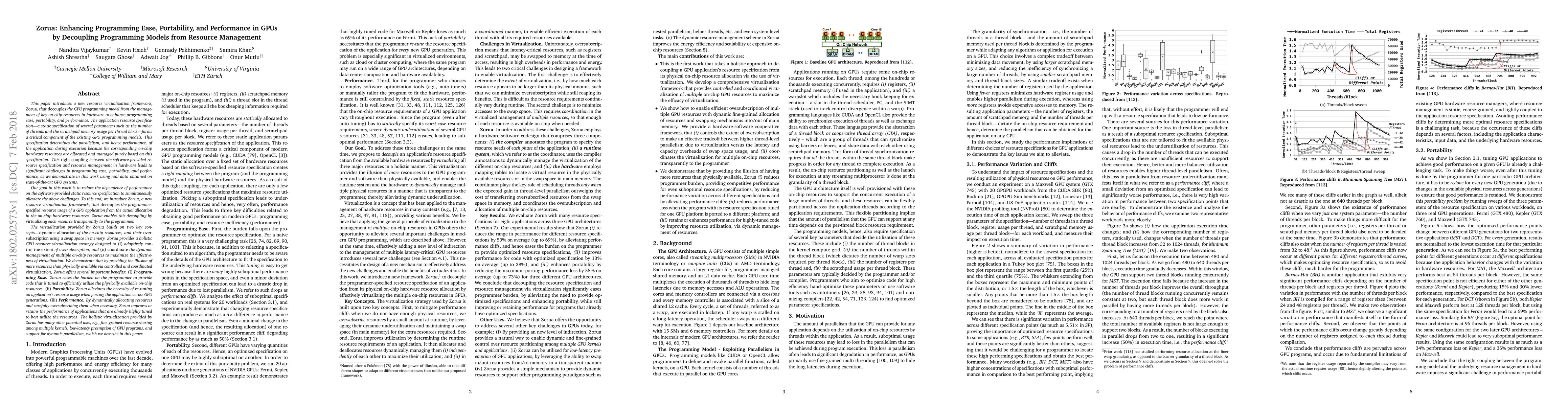 Zorua introduces a resource virtualization framework to decouple programming models from hardware resource management, enhancing programming ease, portability, and performance across GPU generations. This decoupling allows for dynamically allocated resources, improving or maintaining performance even when applications are highly tuned.