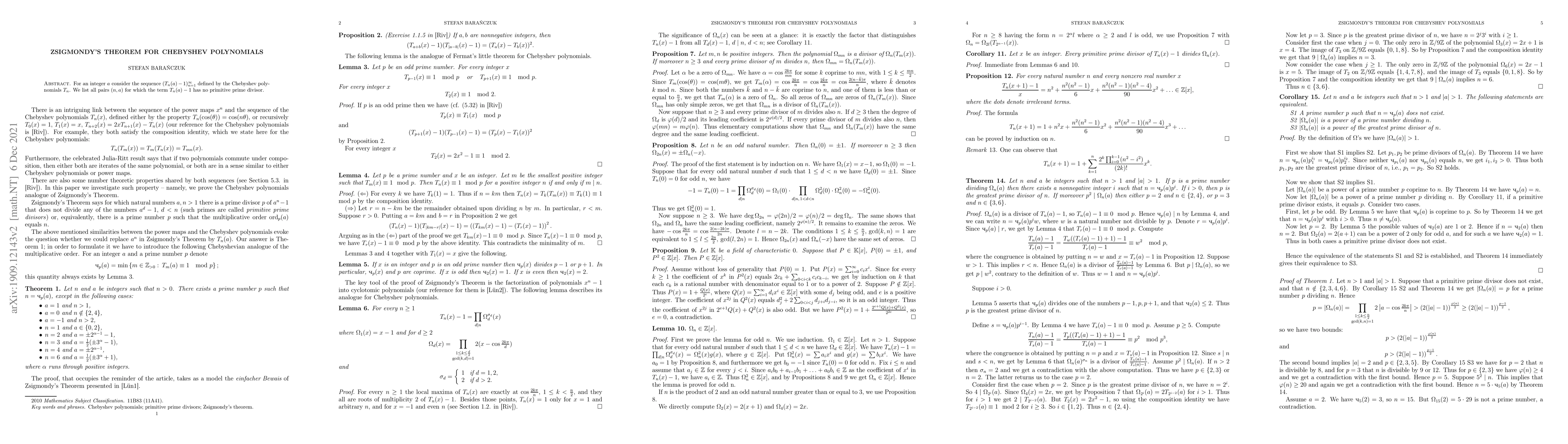 The paper investigates pairs of integers (n, a) where the term T_n(a) - 1 has no primitive prime divisor, focusing on key findings for Chebyshev polynomials.