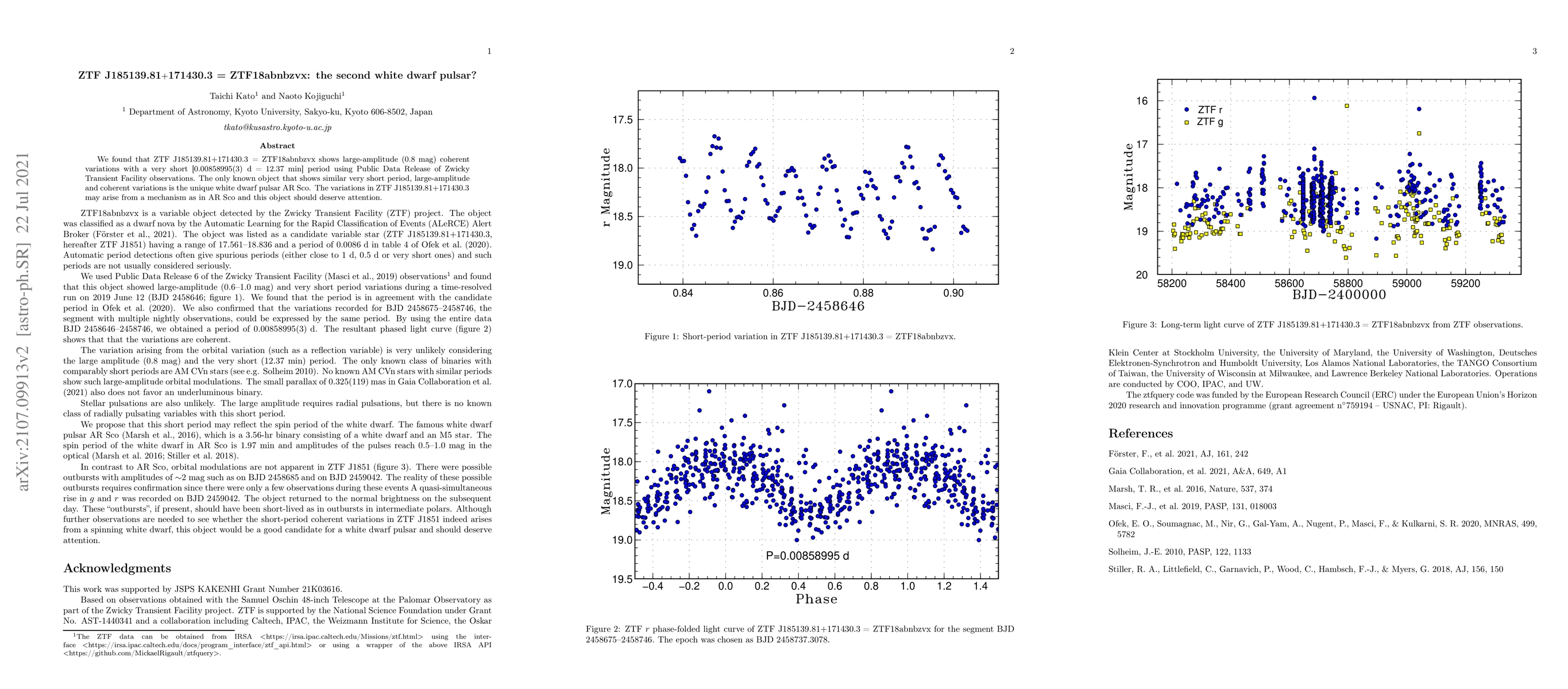 ZTF J185139.81+171430.3 exhibits short-period, large-amplitude coherent variations similar to the white dwarf pulsar AR Sco, suggesting it may be the second known white dwarf pulsar. This finding warrants further investigation into its underlying mechanism.