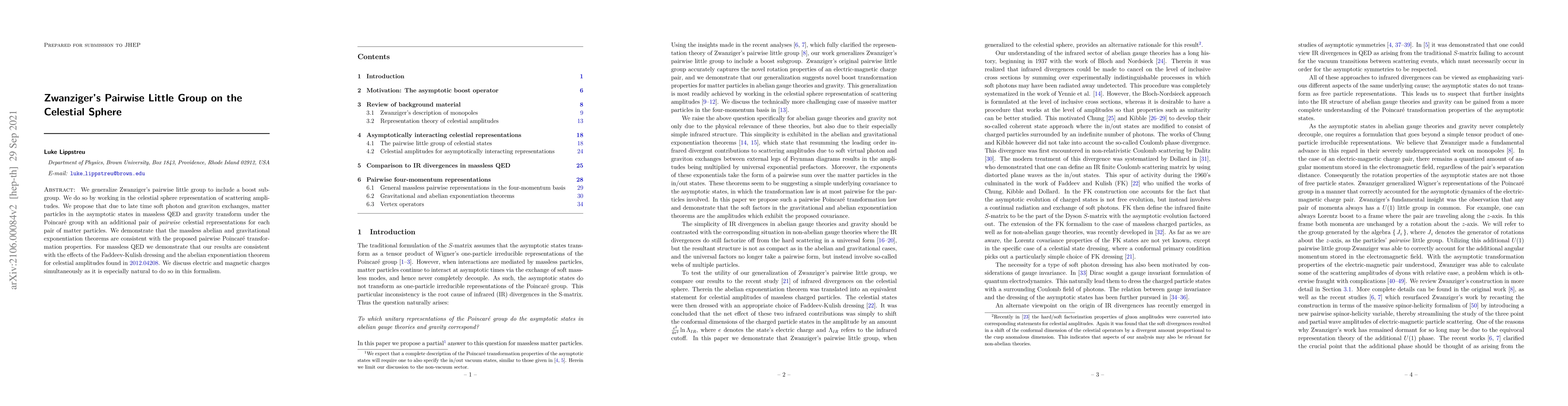 This paper generalizes Zwanziger's pairwise little group to include a boost subgroup in the celestial sphere representation of scattering amplitudes, proposing that massless particles in asymptotic states transform under the Poincaré group with additional pairwise celestial representations. The results are consistent with the massless abelian and gravitational exponentiation theorems and the effects of the Faddeev-Kulish dressing in QED.