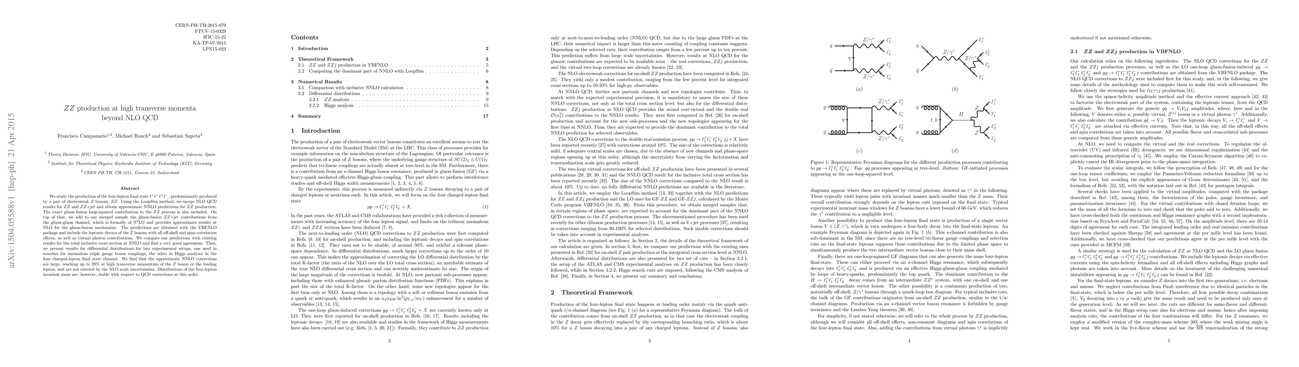 This paper studies the production of ZZ boson pairs in high transverse momentum scenarios, merging NLO QCD results with approximate NNLO predictions using the LoopSim method. The analysis reveals significant corrections, up to 20%, not covered by NLO uncertainties, particularly relevant for searches of anomalous triple gauge couplings and Higgs analyses in four-lepton final states.